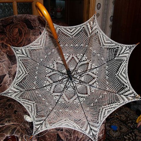Описание: Зонт вяжется по схеме салфетки. Будьте внимательны при выборе: каркасы бывают 8-спицевые (чаще всего), 10-спицевые и больше (редко), соответственно надо выбирать схему с рисунком, соответствующим числу спиц.