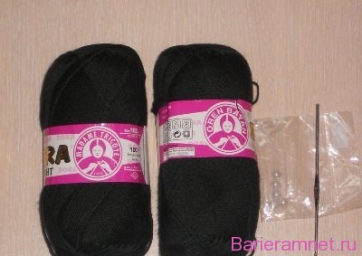 пряжа черного цвета (100% акрил, моток 100гр/306 метров) – 2 штуки;
