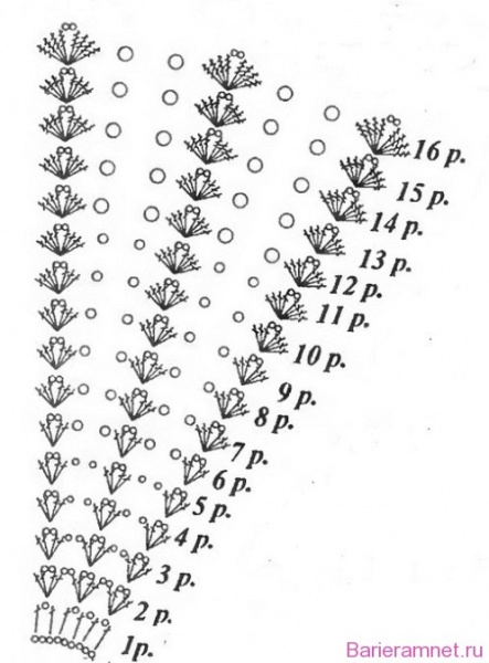 4. Увеличивая количество столбиков с накидом, мы расширяем изделие.