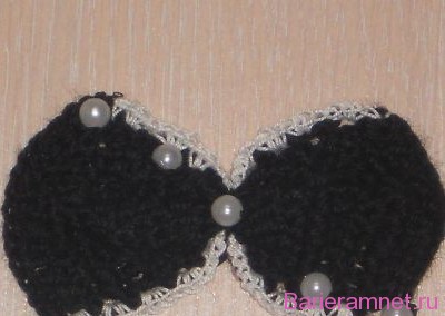 7. Теперь приступаем к вязанию банта. В принципе, если хотите можно обойтись и без него. Это уже кто как захочет. Итак, черной нитью набираем 12 воздушных петель.
