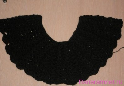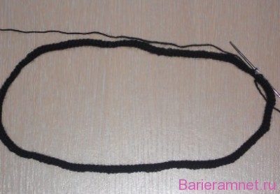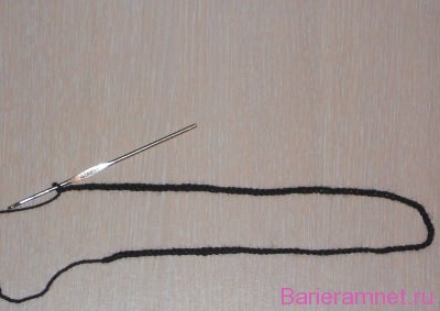 1. На крючок черной нитью набираем 180 воздушных петель (здесь нет точного размера, смотря какой диаметр вам нужен, измерьте сначала окружность плеч, а потом высчитайте необходимое количество петель).